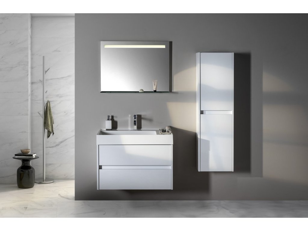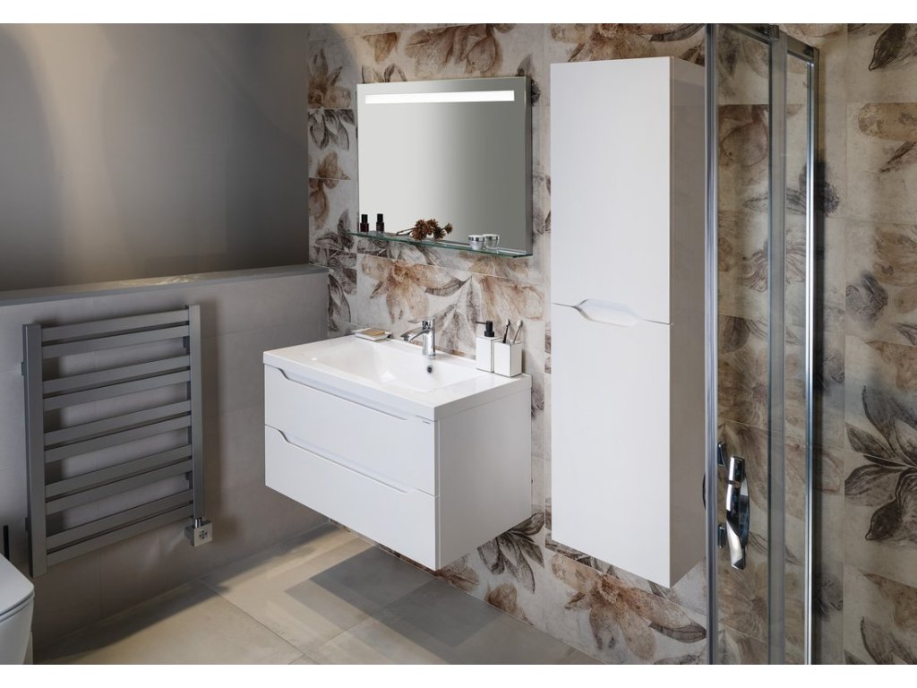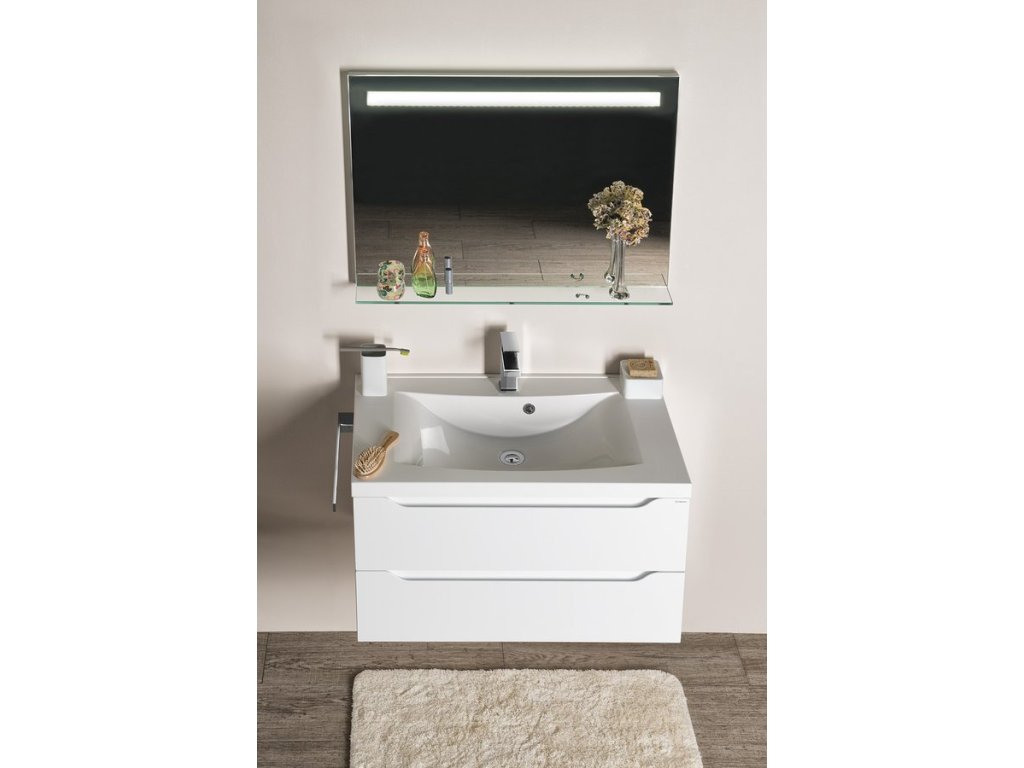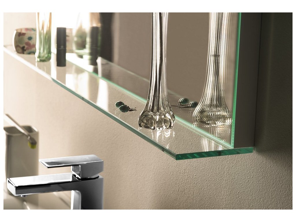 Podsvícená zrcadla osvětlují koupelnu jasným homogením svitem díky modernímu zdroji LED. Jejich dlouhá životnost a nízká spotřeba jsou hlavními výhodami oproti klasické zářivce. Světlo vyzařované skrz vypískované části dodá koupelně jemné osvětlení, zvláště příjemné při ranní hygieně. Zároveň jistě oceníte i praktickou polici, která je součástí zrcadla.