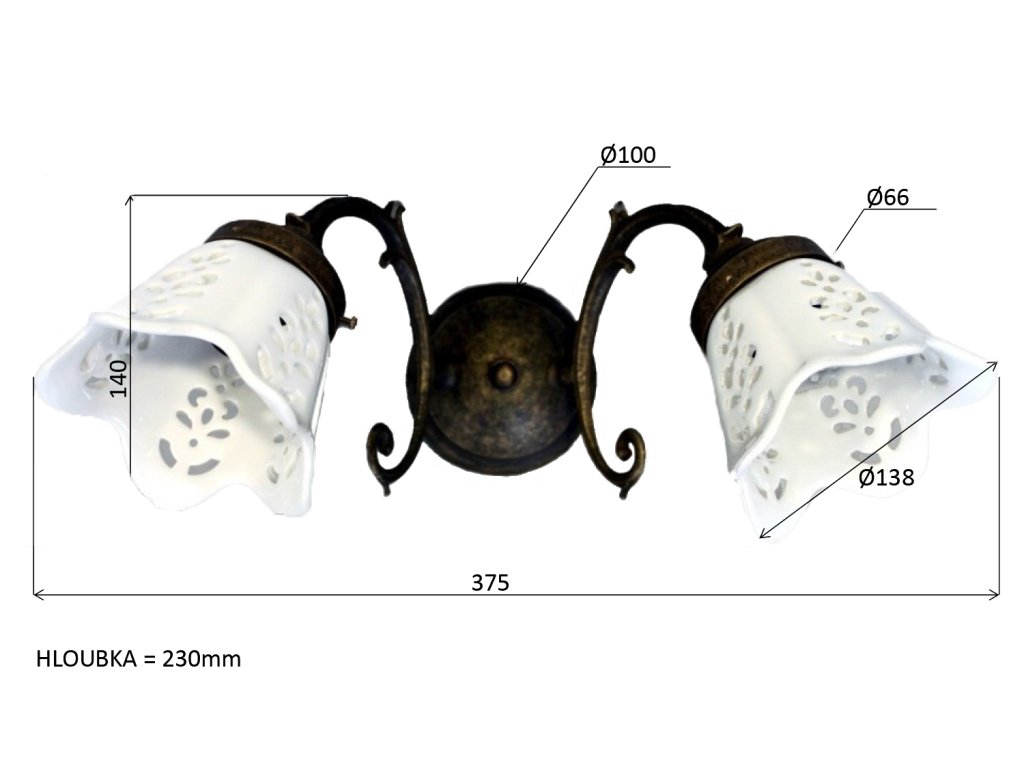 Sapho BRINDISI svítidlo 2xE14, 40W, 230V, keramické stínítko, IP21, bronz MC052