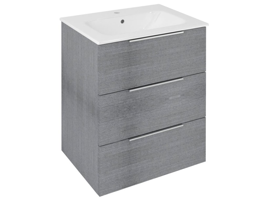 Sapho CIRASA umyvadlová skříňka 59,2x75x46cm, 3x zásuvka, dub stříbrný CR631-1111
