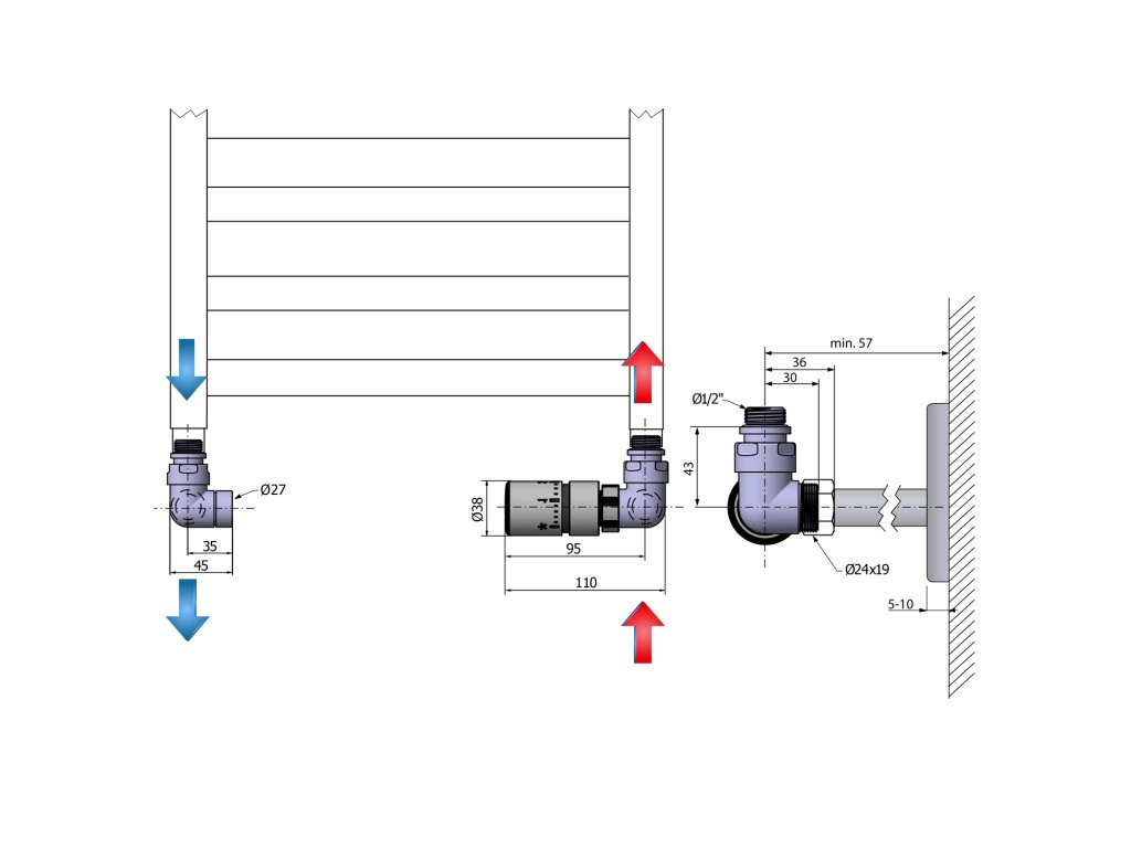 V případě ústředního vytápění je důležitý výběr připojovací sady ventilů. Na výběr je použití ručního ventilu nebo ventilu s termostatickou hlavicí.