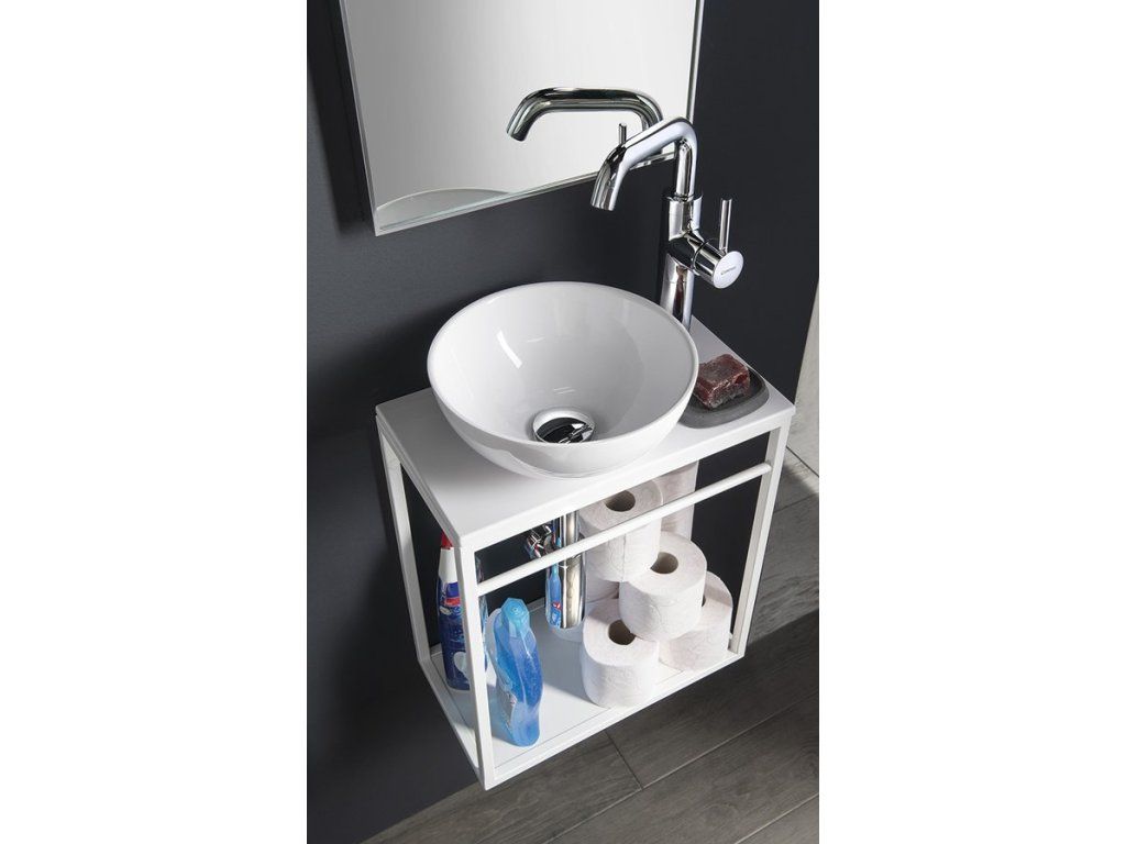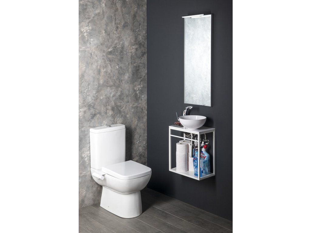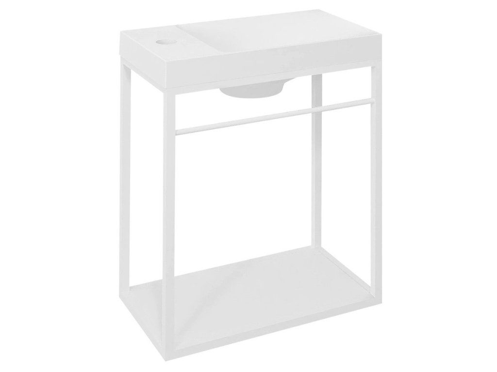 Konstrukce: lakovaná ocel, polička: lamino tl. 12 mm, bílá mat.