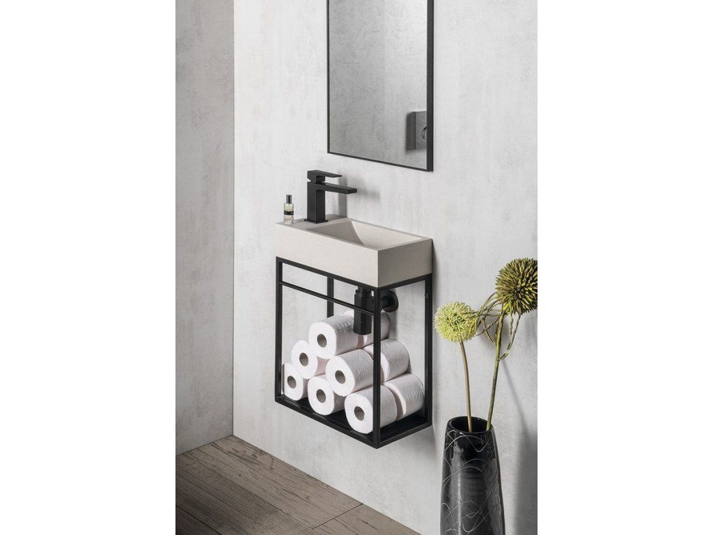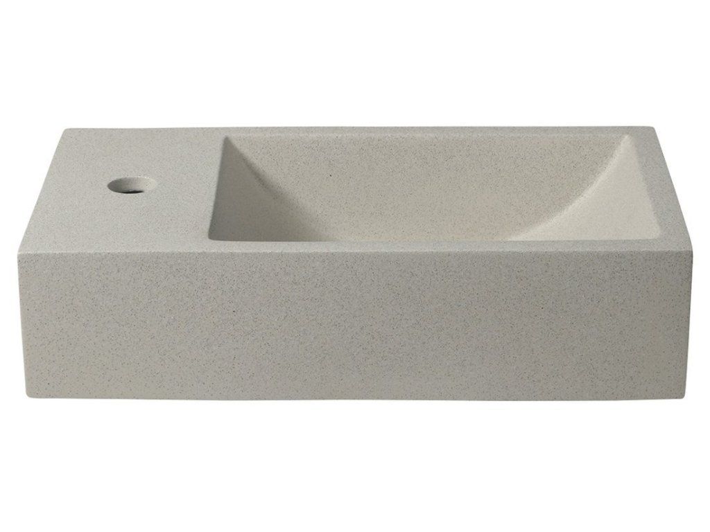 Sapho CREST L betonové umývátko, nástěnné, včetně výpusti, 40x22cm, bílý pískovec AR410