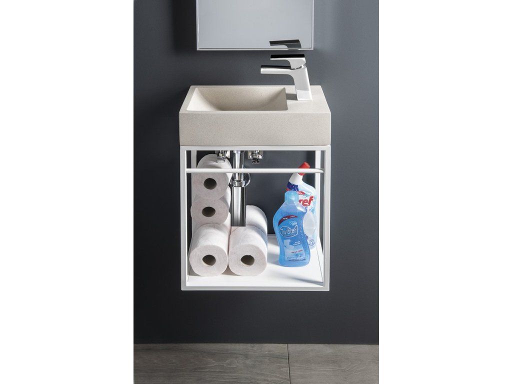 Sapho CREST R betonové umývátko, nástěnné, včetně výpusti, 40x22cm, bílý pískovec AR413