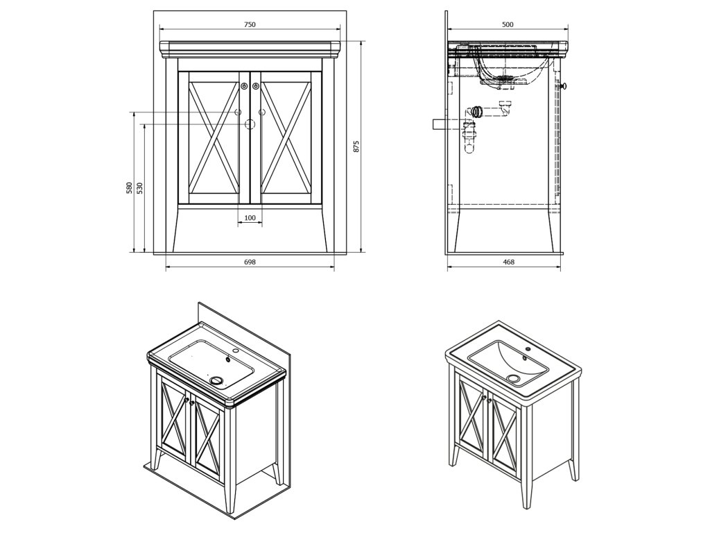 Sapho CROSS umyvadlová skříňka 70x81x47cm, starobílá CR275