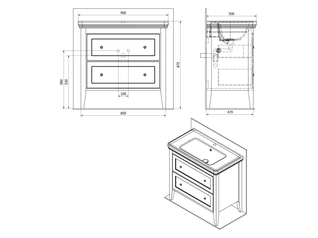 Sapho CROSS umyvadlová skříňka 85x81x47cm, 2x zásuvka, starobílá CR291