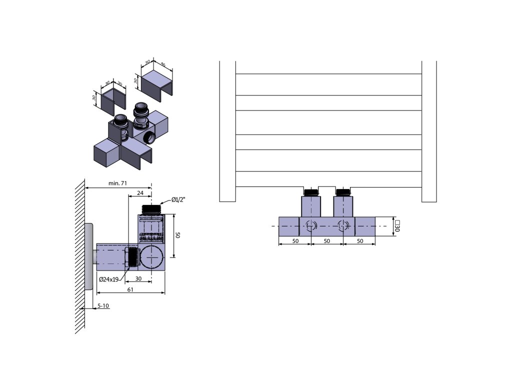 Topení s připojovací roztečí 50 mm