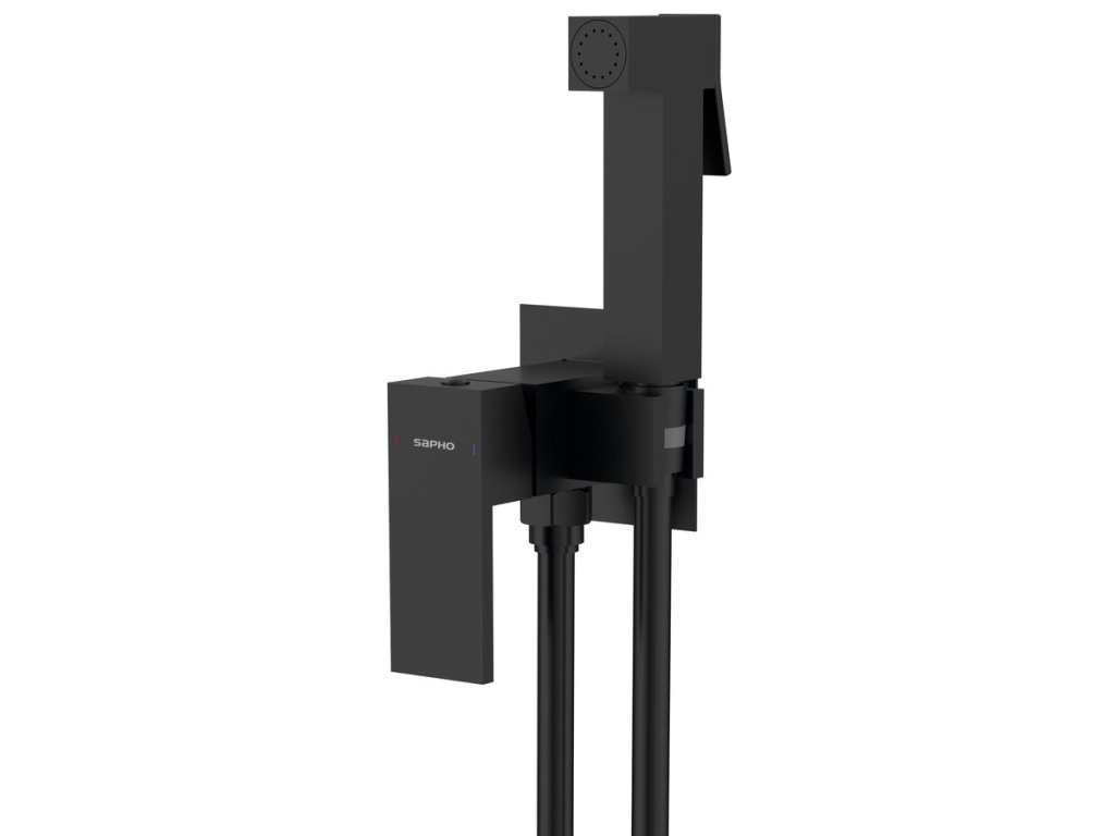 Sapho CUBEMIX podomítková bidetová baterie se Stop sprškou, hranatá, černá mat CM040B