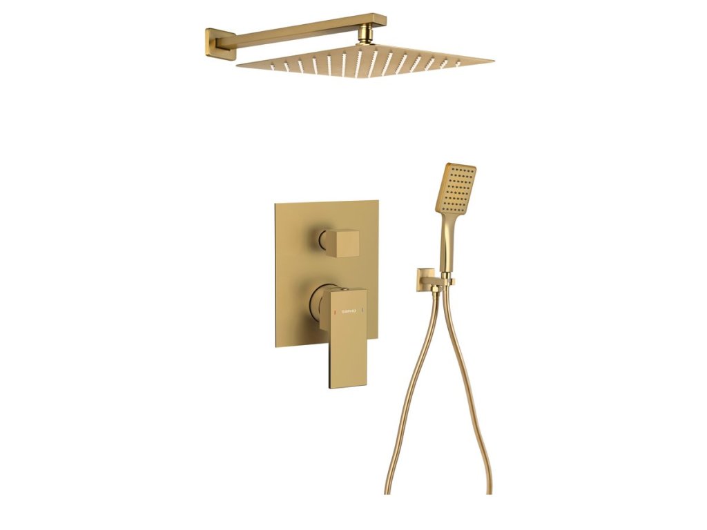 Sapho CUBEMIX podomítkový sprchový set s pákovou baterií, 2 výstupy, vyústění, zlato mat CM042GB-01
