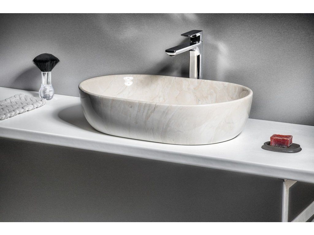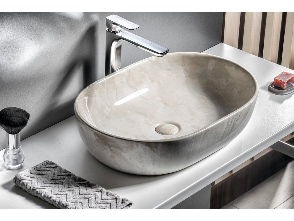 Série keramických umyvadel DALMA zaujme kamenným efektem. Umyvadla jsou glazovaná s vypálenými obtisky v designu kamene, čímž je zaručena stálost a trvanlivost dekoru. Vybírat můžete nejen ze tří dekorů v odstínech mramoru, ale i z pěti tvarů. Umyvadla jsou určena k postavení na desku, ke všem lze dokoupit uzavíratelnou výpust v barvě umyvadla.