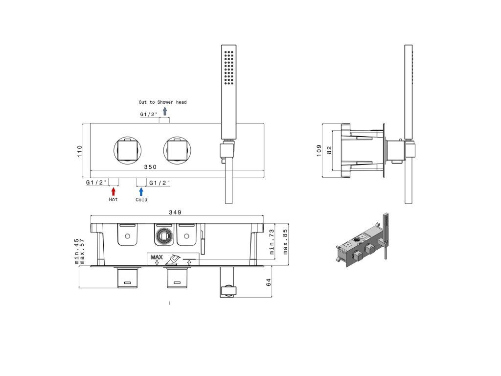 Sapho DIMY podomítková sprchová/vanová termostatická baterie s ruční sprchou, 2 výstupy,chrom DM493
