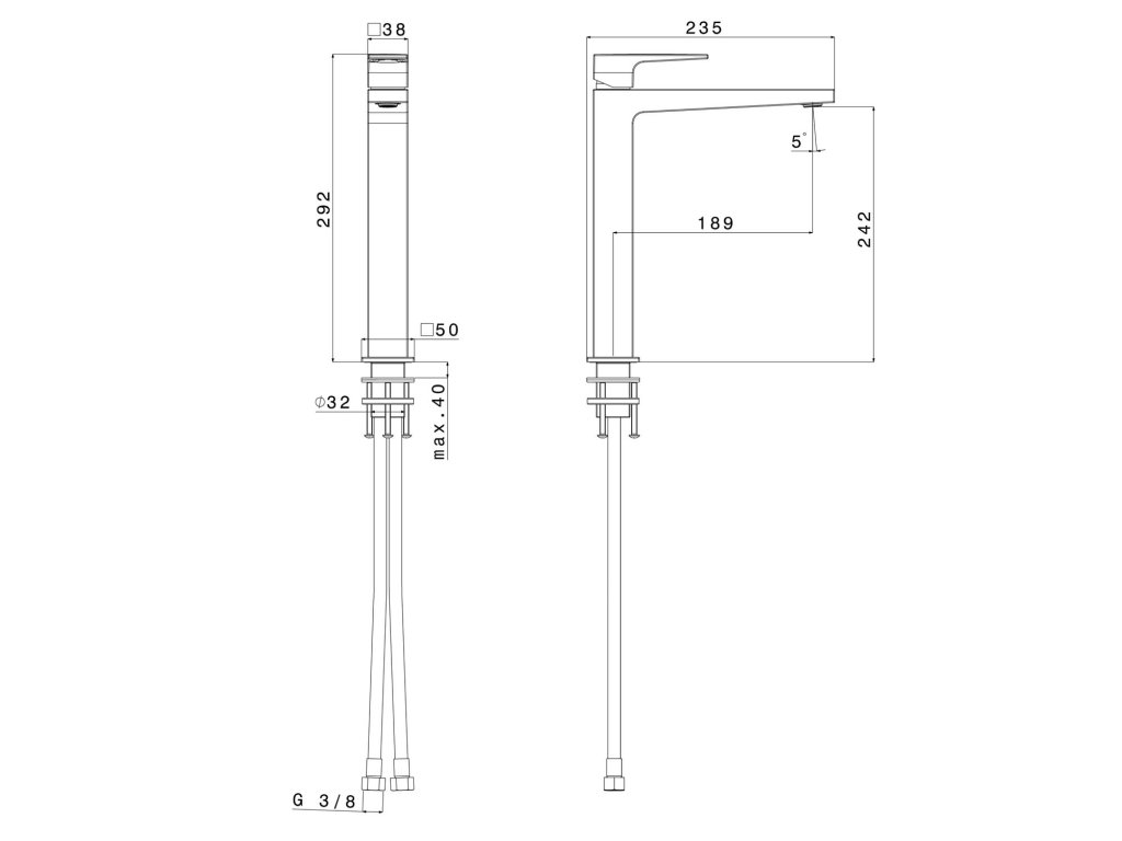 Sapho DIMY stojánková umyvadlová baterie vysoká, černá mat DM006BL
