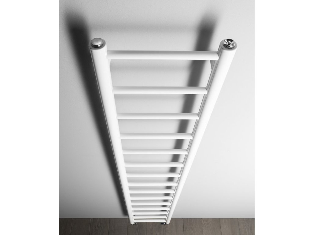 Elegantní koupelnový radiátor ze správně kombinovaných průměrů vodorovných a svislých trubek. Krása v jednoduchosti skloubená s atraktivním barevným provedením.