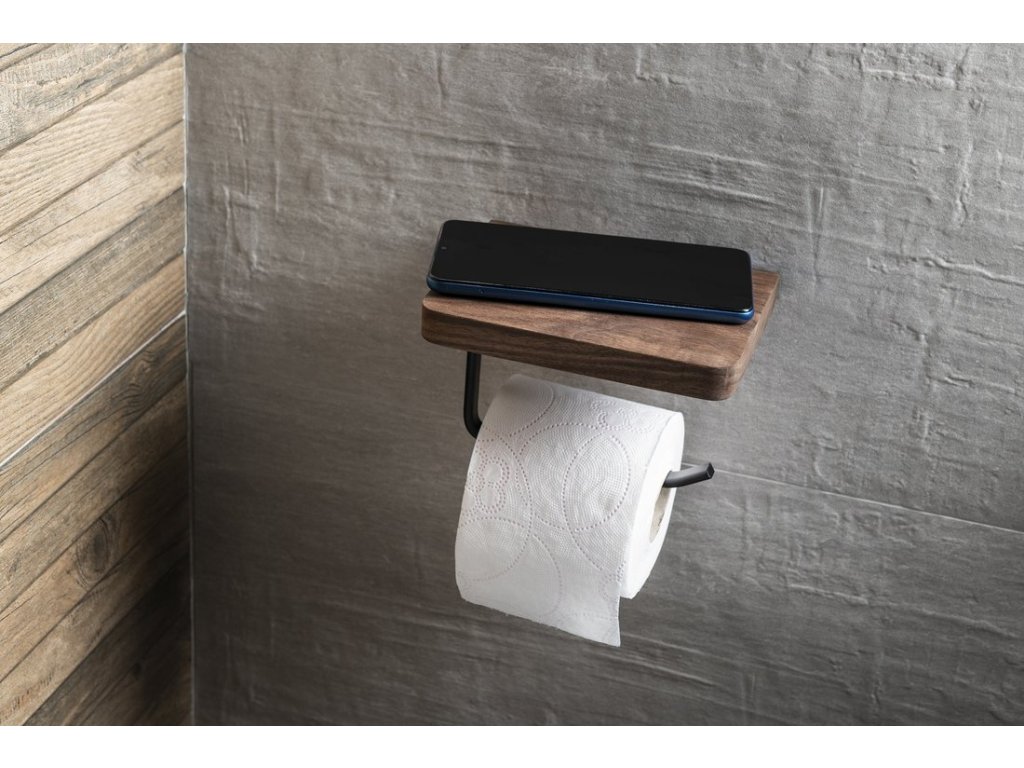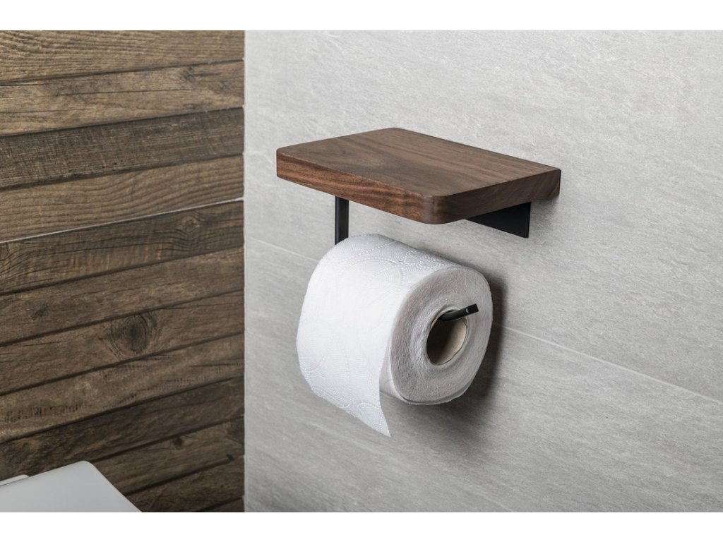 Sapho Držák toaletního papíru s poličkou, černá mat/ořech SKA417