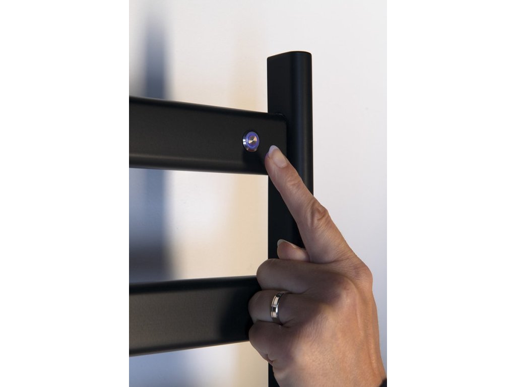 Elektrická otopná tělesa z lakované nerez oceli ELIAS jsou určena k nahřívání a sušení ručníků, což oceníte zejména v zimním období. Vnitřek otopného tělesa je vyroben z uhlíkového vlákna (bez použití kapalné plnící směsi), což zajišťuje skvělou tepelnou vodivost. Podsvětlený vypínač je integrován v pravé horní části. Těleso lze zapojit přímo do elektrické zásuvky díky kroucenému kabelu o délce 1,2 m, který je umístěn vpravo dole a nelze ho pozičně měnit.