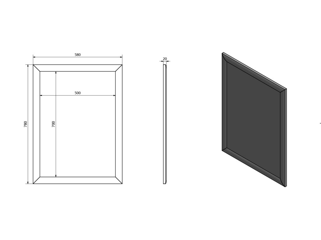 - rozměr zrcadloviny 500x700 mm