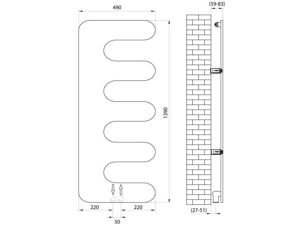 Topení s připojovací roztečí 50 mm