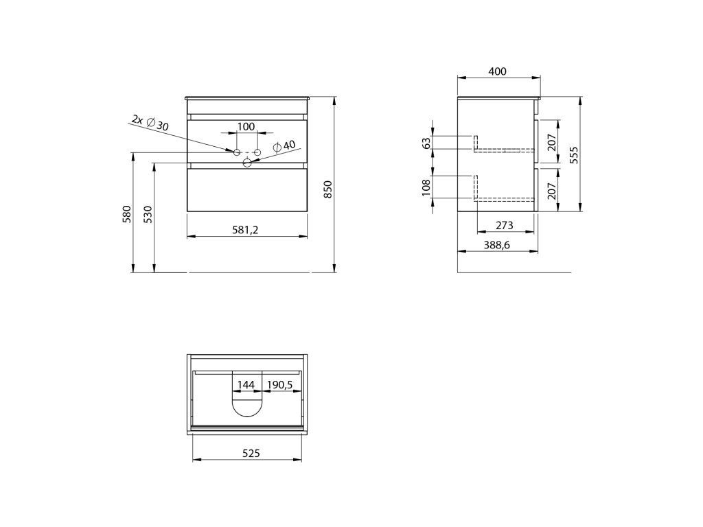 Zásuvky jsou vybaveny výsuvy s pomalým dojezdem a automatickým dovřením. Úložný prostor lze rozšířit přidáním doplňkových skříněk ESPACE. Nábytek je dodáván ve smontovaném stavu, připravený k okamžité instalaci.