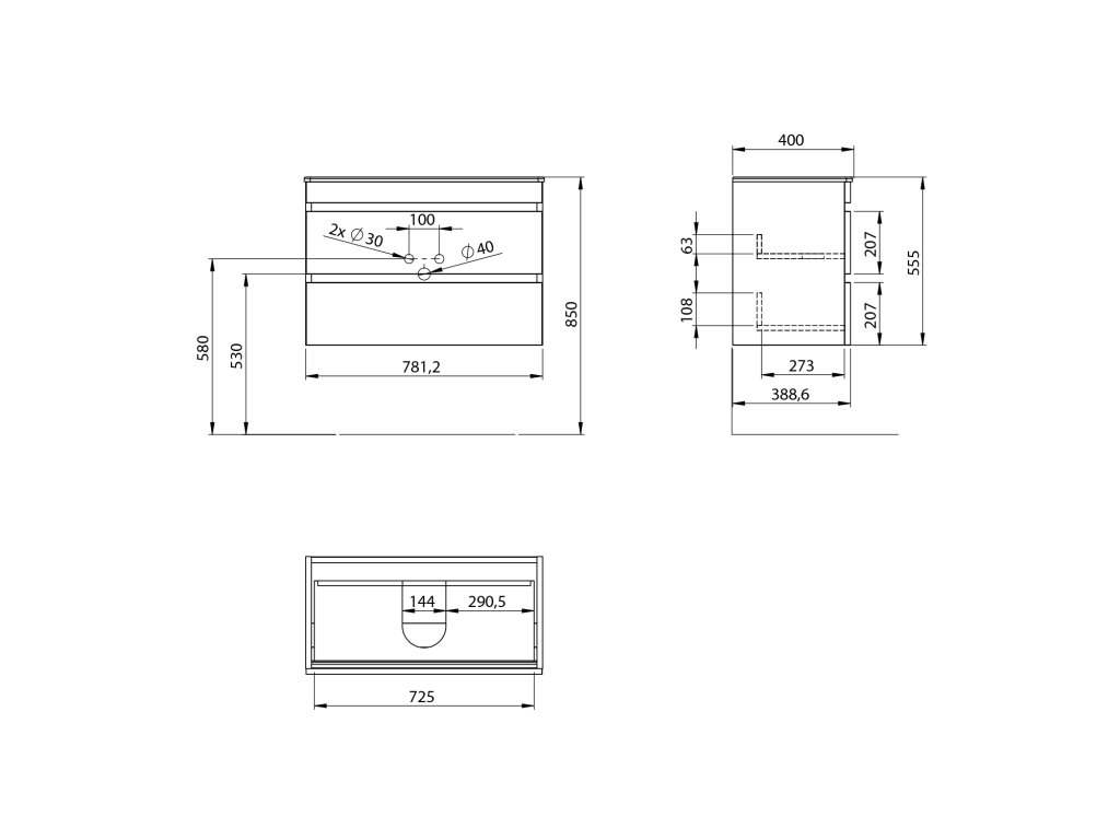 Zásuvky jsou vybaveny výsuvy s pomalým dojezdem a automatickým dovřením. Úložný prostor lze rozšířit přidáním doplňkových skříněk ESPACE. Nábytek je dodáván ve smontovaném stavu, připravený k okamžité instalaci.