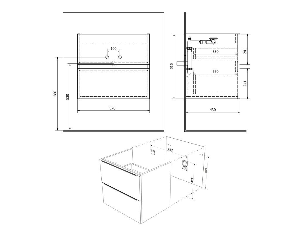 - Horní zásuvky bez výřezu pro sifon.