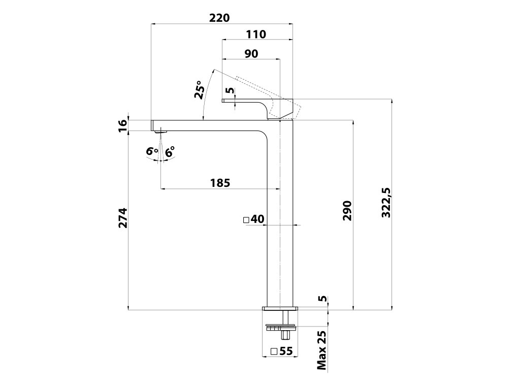 Sapho FORATA stojánková umyvadlová baterie vysoká, prodloužená hubice, chrom FT007