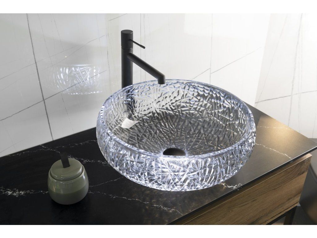 Sapho GAVIOTA skleněné gravírované umyvadlo na desku Ø 42cm, černá TY306