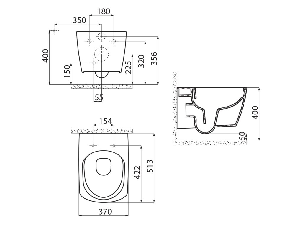Rimless (NoRim) – toalety bez tradičního oplachového kruhu. Hladký povrch bez dutin a záhybů. Oplachová voda vytéká rozdělovačem vody pouze ze zadní části WC mísy a díky speciálnímu tvaru keramiky dokonale opláchne vnitřní prostor. Výhodou je snadná údržba a čištění WC mísy.