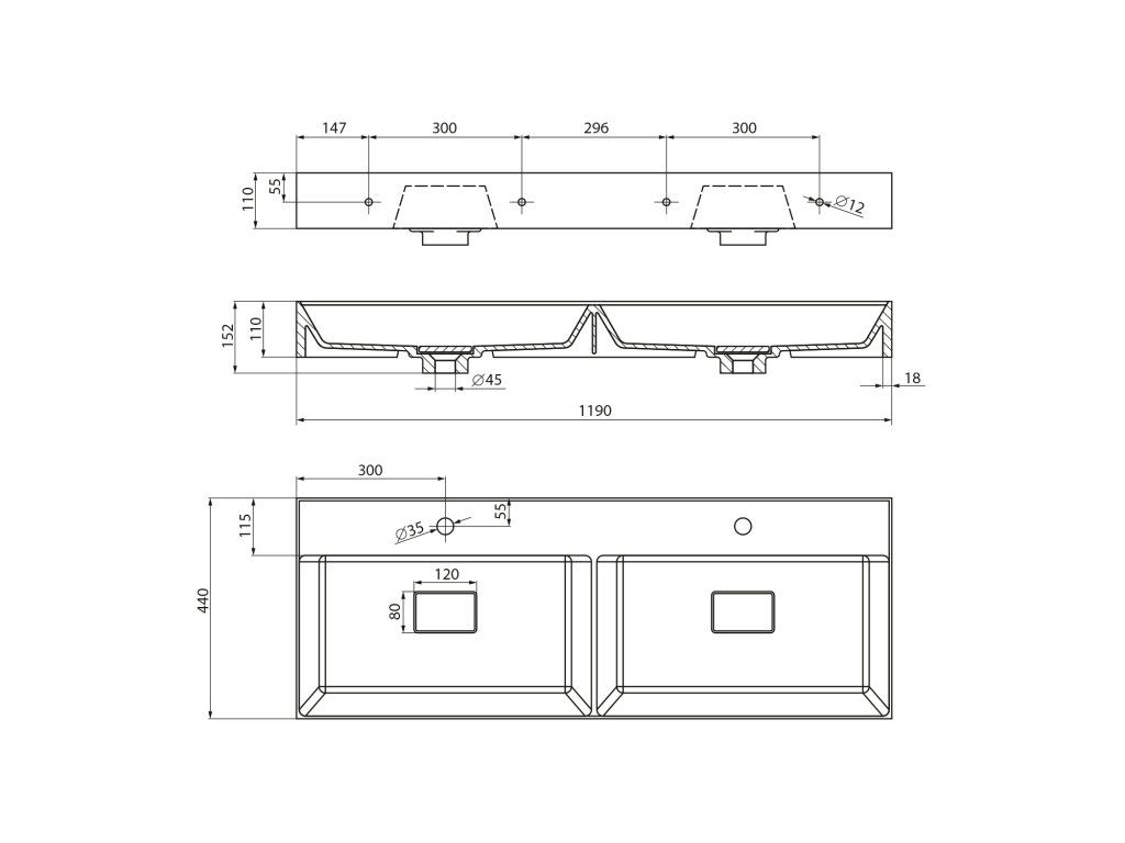 | Typ umyvadla: | Dvojumyvadlo |