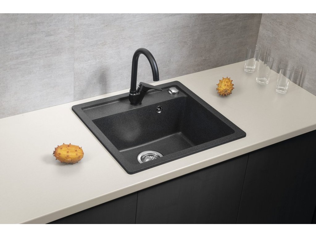 Sapho Granitový vestavný dřez mono, 53x50cm, černá GR1034
