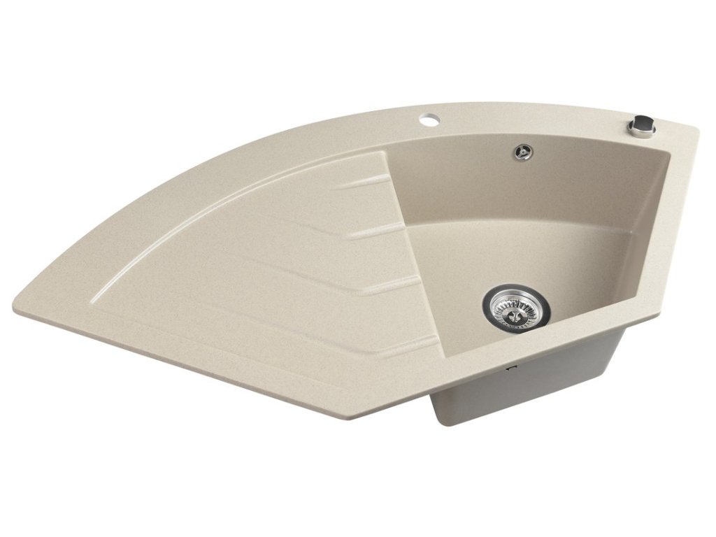 Sapho Granitový vestavný dřez rohový s odkapem, 114x57,5cm, béžová GR1932