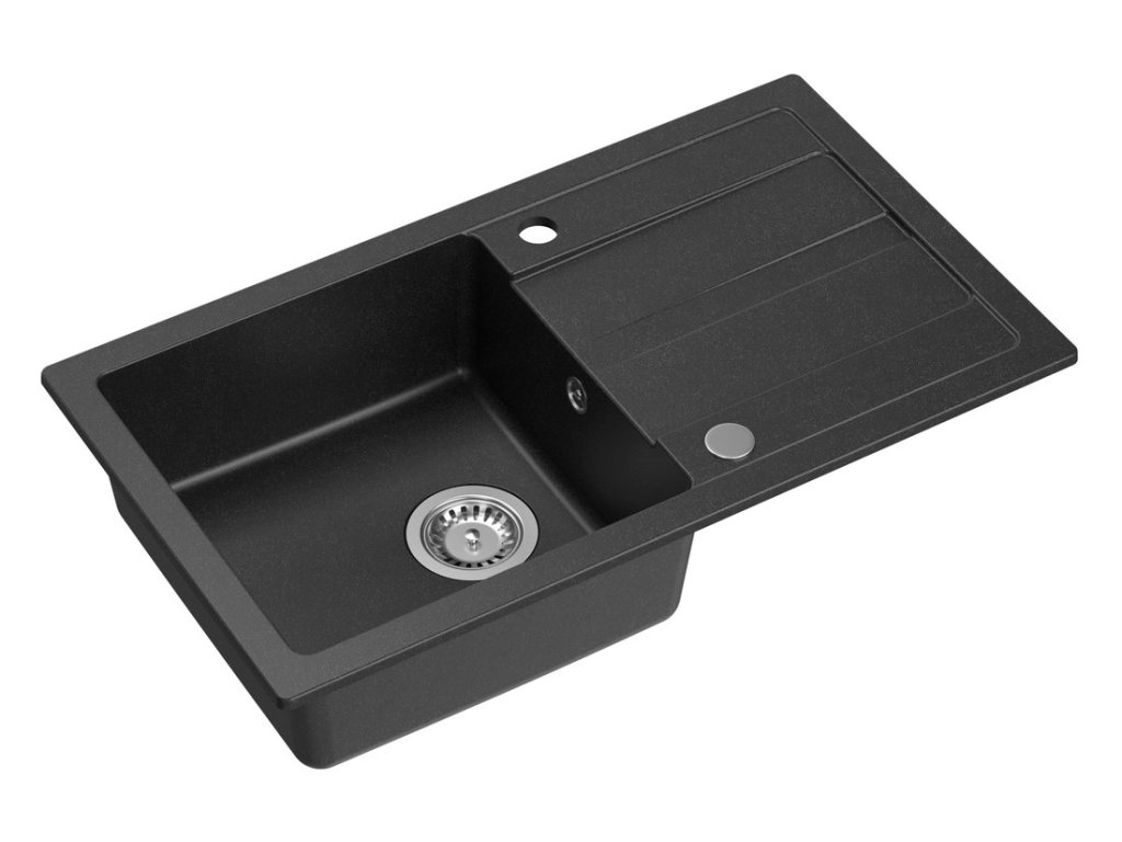 Sapho Granitový vestavný dřez s odkapem, 77x44cm, černá GR7204