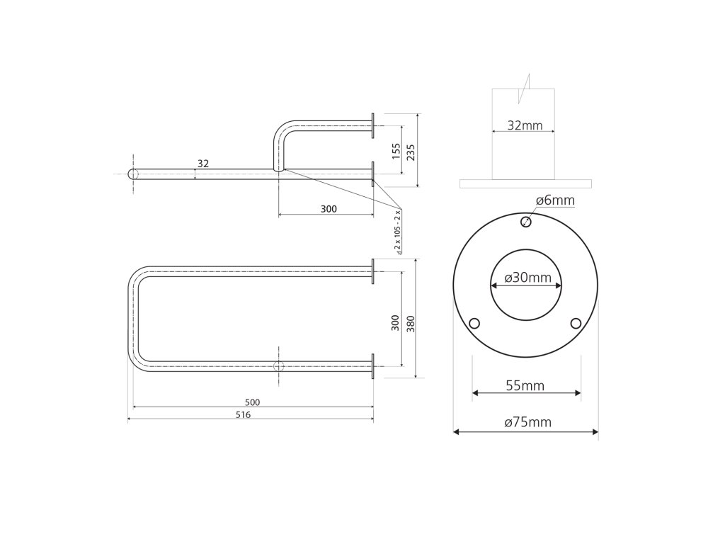 K uchycení jsou dodávány nerez šrouby podle DIN 95, 6×60 mm s hmoždinkami z plastu pro montáž do plných cihel a betonu.