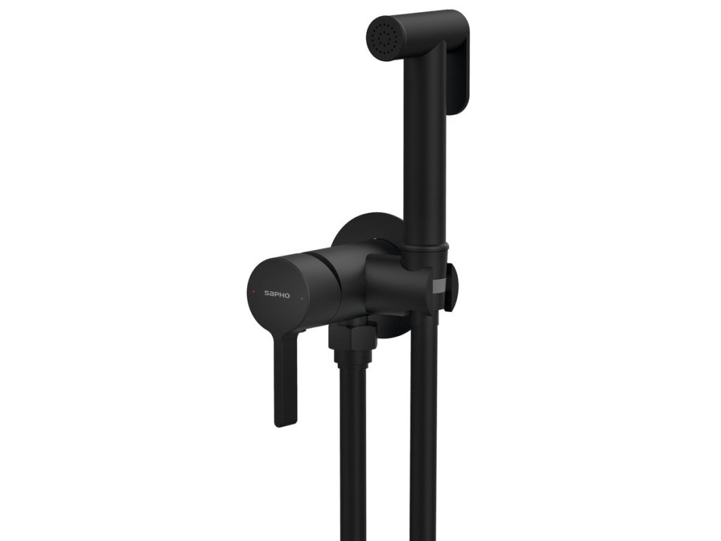 Sapho ICONIC podomítková bidetová baterie se Stop sprškou, kulatá, černá mat AF040B