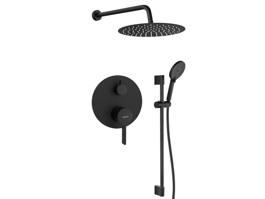 Sapho ICONIC podomítkový sprchový set s pákovou baterií, 2 výstupy, posuvný držák sprchy, černá mat AF042B-02