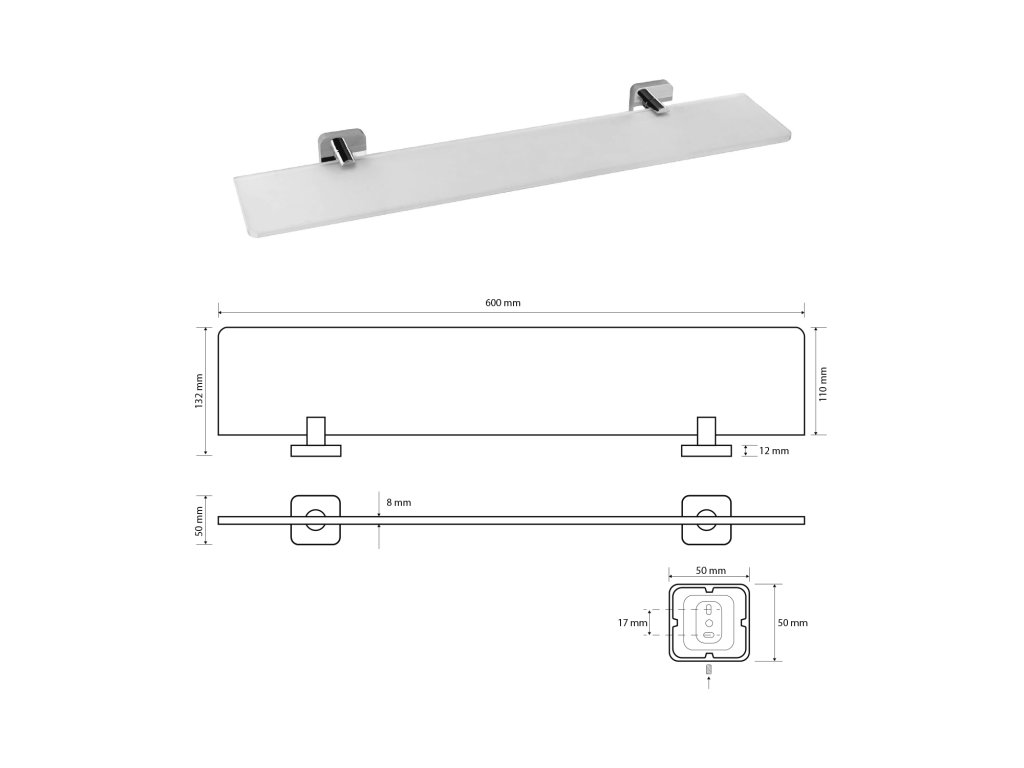 Sapho INSIA polička skleněná 600x50x132mm, chrom IS015