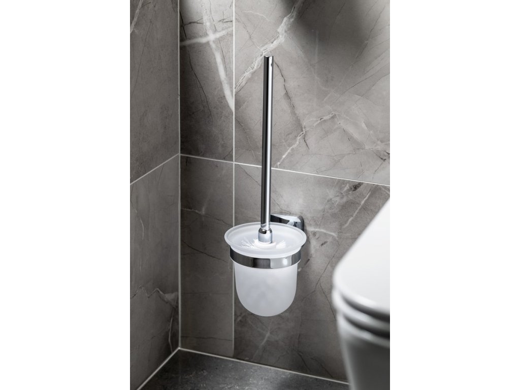 Sapho INSIA WC štětka závěsná, mléčné sklo, chrom IS008
