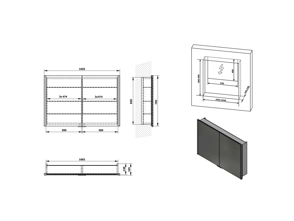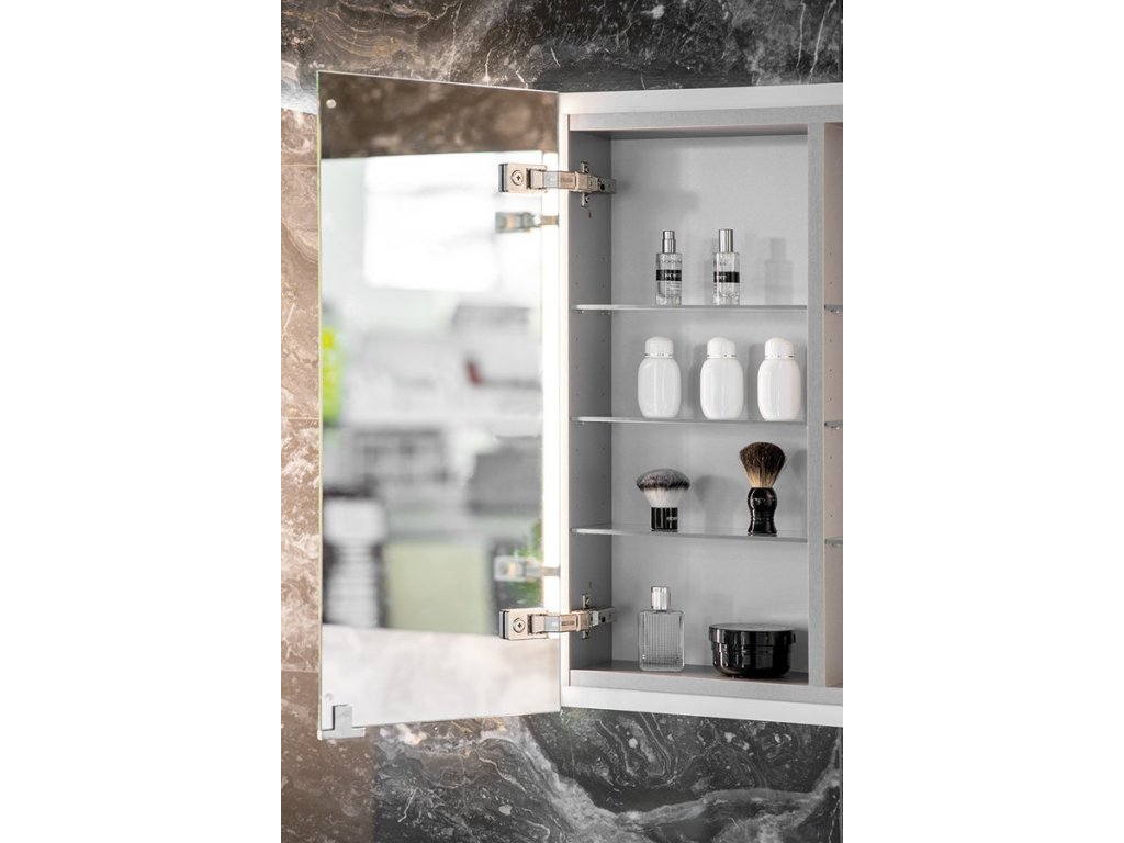 | Výbava: | Osvětlení;Oboustranná zrcadlová dvířka;Zpomalovací panty;Zápustné do zdi |