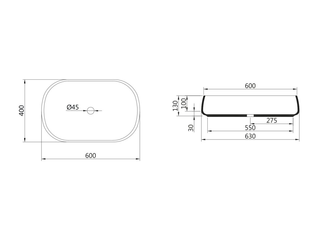 Sapho JUMPER keramické umyvadlo na desku, 60x40cm, bílá WH070