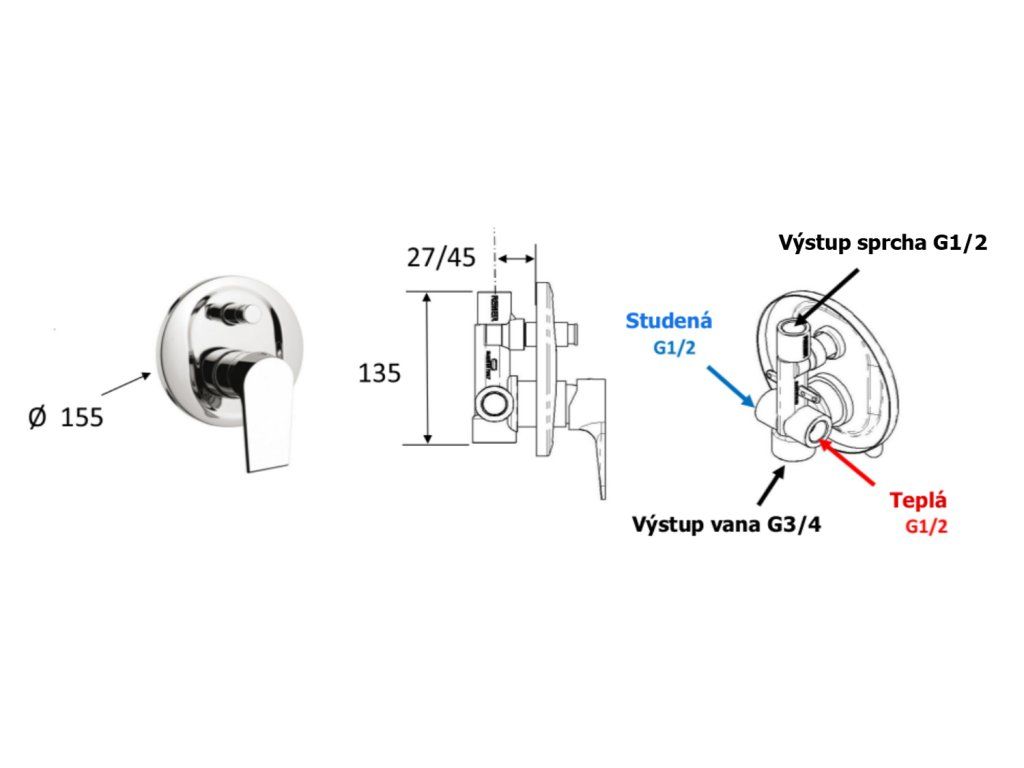Sapho KAI podomítková sprchová baterie, 2 výstupy, chrom KA42