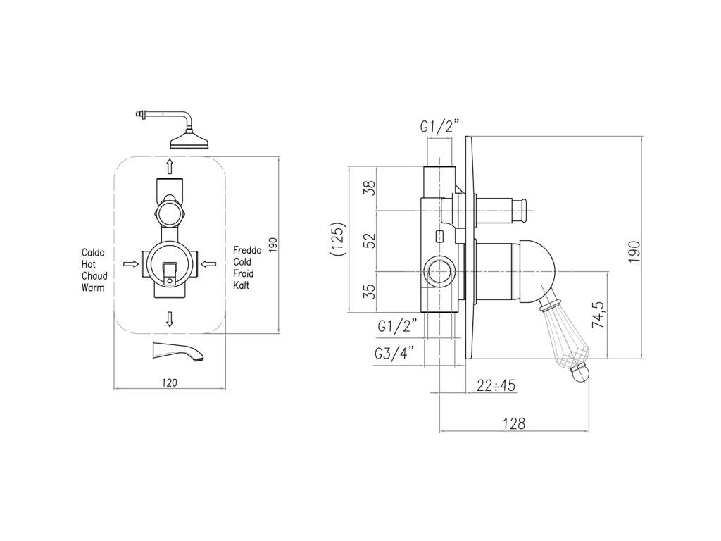 | Přepínač na sprchu: | Tlakový |
