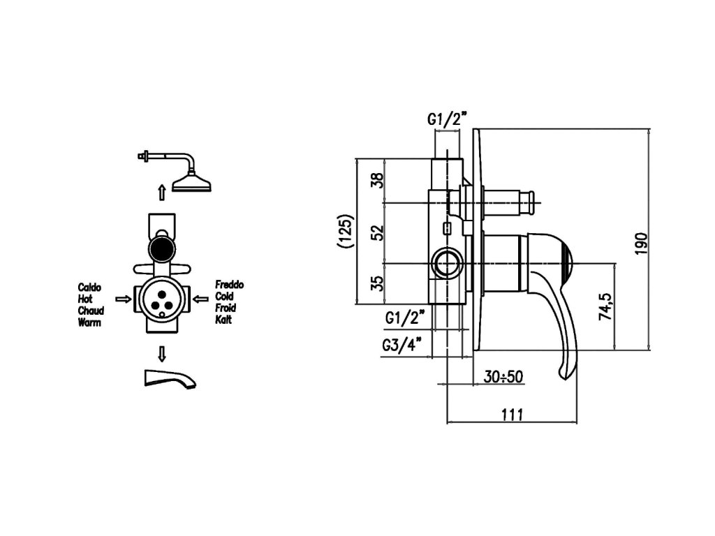 Sapho KIRKÉ podomítková sprchová baterie, 2 výstupy, zlato KI42Z