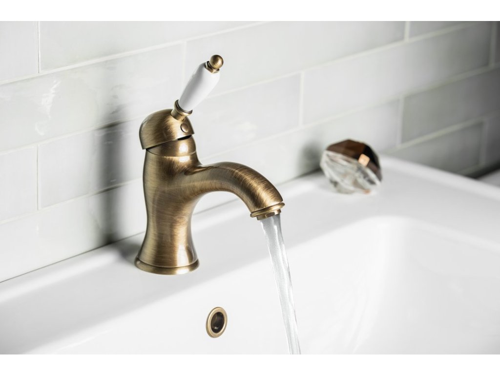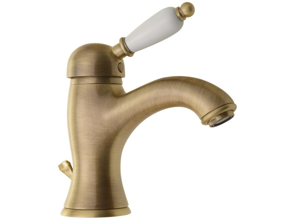 Sapho KIRKÉ WHITE stojánková umyvadlová baterie s výpustí, bílá páčka, bronz KI02BB