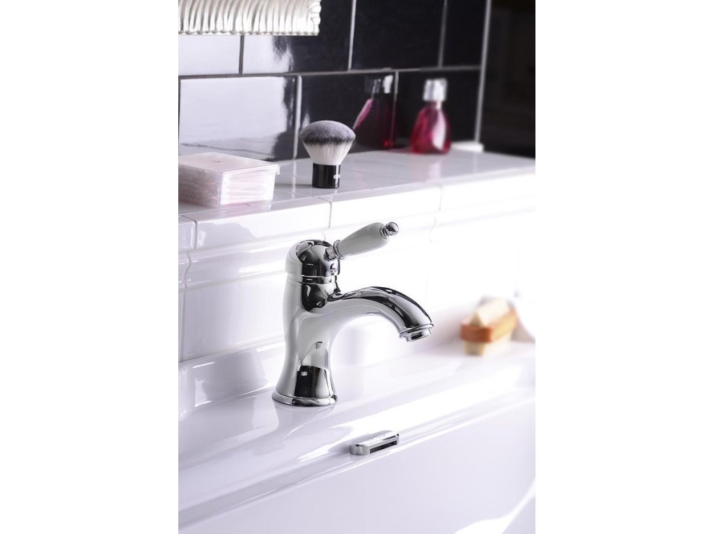 Sapho KIRKÉ WHITE stojánková umyvadlová baterie s výpustí, bílá páčka, chrom KI02BC