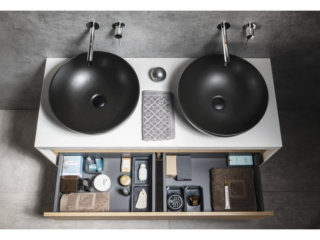 Nábytek je vybaven pojezdy zásuvek s pomalým dojezdem a systémem automatického dovření zásuvek. Již žádné hlučné dovírání.