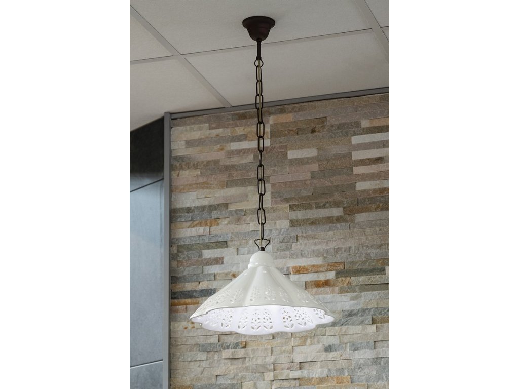Sapho LAMPEDUSA závěsné svítidlo E27, 60W, 230V, IP21, keramické stínítko 30cm, mosazný řetěz MC111C