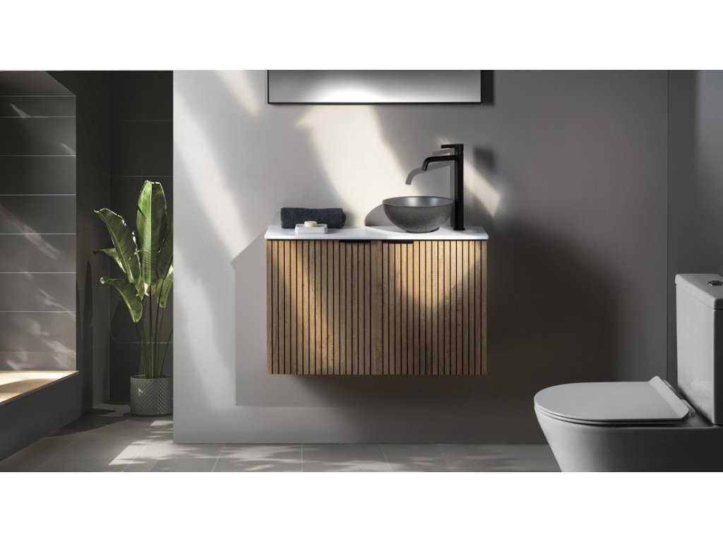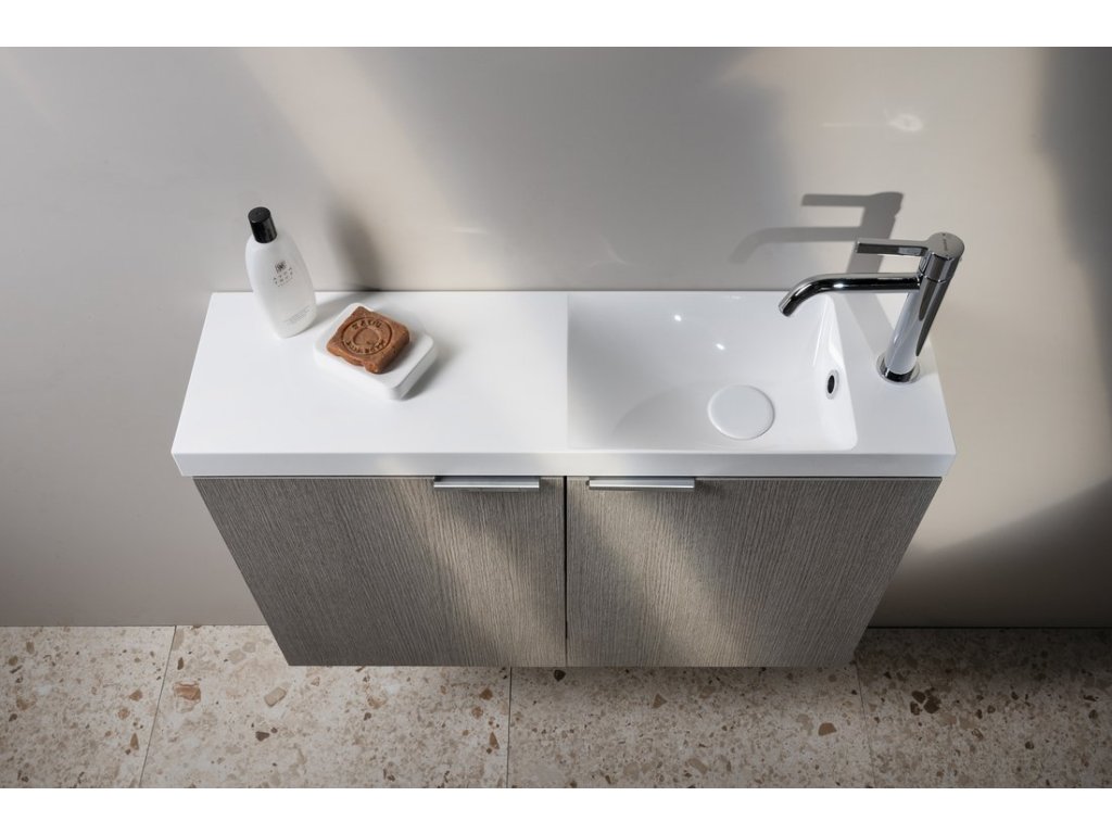 Malé rozměry koupelnového nábytku LATUS X umožňují instalaci především do stísněných prostor, obzvláště na toalety. Skříňka se přímo nabízí k uskladnění čistících a hygienických prostředků nebo toaletního papíru. Umyvadlo z litého mramoru nebo betonu vytváří se skříňkou kompaktní celek. Navíc je možná i varianta desky a umyvadla na desku. V nabídce je jak několik tvarů umyvadel, tak barevných dekorů skříněk pro větší kompatibilitu.