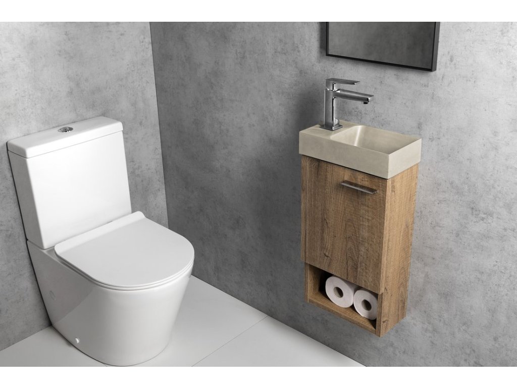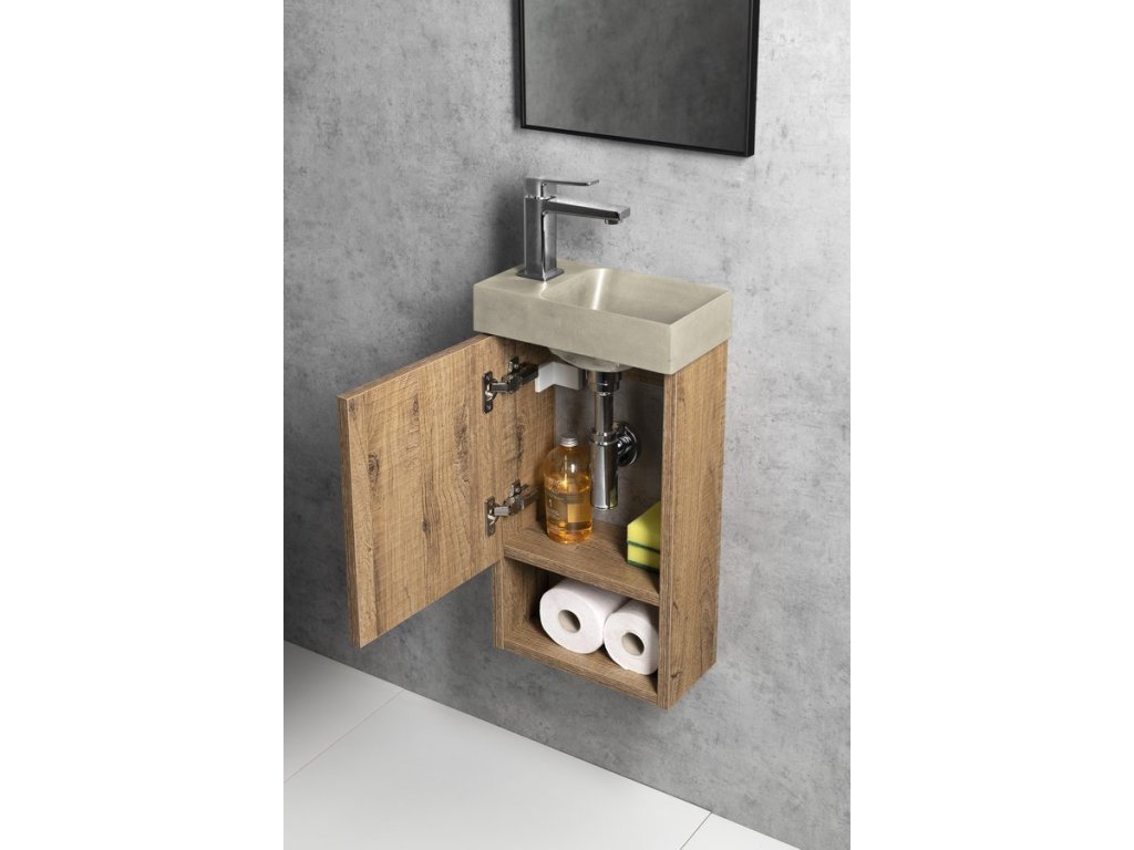 Malé rozměry koupelnového nábytku LATUS XI umožňují instalaci především do stísněných prostor, obzvláště na toalety. Skříňka se přímo nabízí k uskladnění čistících a hygienických prostředků nebo toaletního papíru. Umyvadlo z litého mramoru nebo betonu vytváří se skříňkou kompaktní celek. V nabídce je jak několik tvarů umyvadel, tak barevných dekorů skříněk pro větší kompatibilitu.