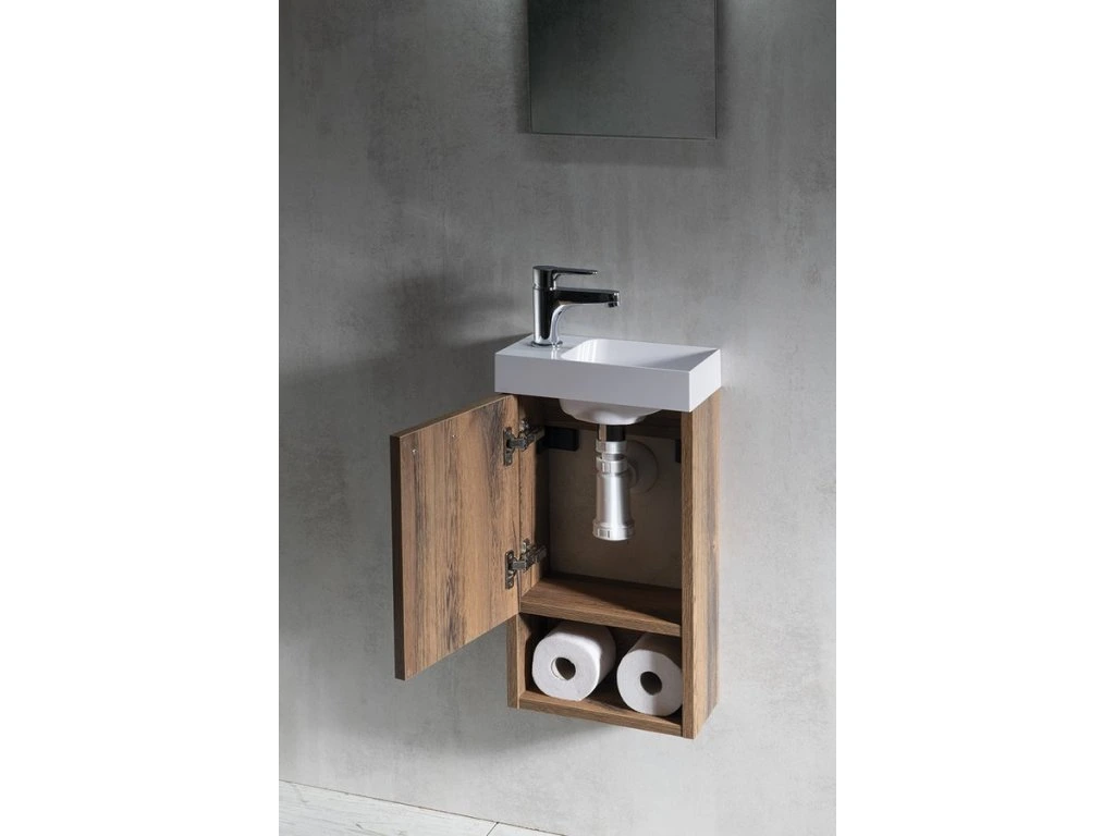 Malé rozměry koupelnového nábytku LATUS XI umožňují instalaci především do stísněných prostor, obzvláště na toalety. Skříňka se přímo nabízí k uskladnění čistících a hygienických prostředků nebo toaletního papíru. Umyvadlo z litého mramoru nebo betonu vytváří se skříňkou kompaktní celek. V nabídce je jak několik tvarů umyvadel, tak barevných dekorů skříněk pro větší kompatibilitu.