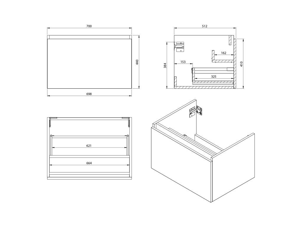 Sapho LOREA umyvadlová skříňka 70x44x51,2cm, 1x zásuvka, dub alabama/bílá mat LE070-2231