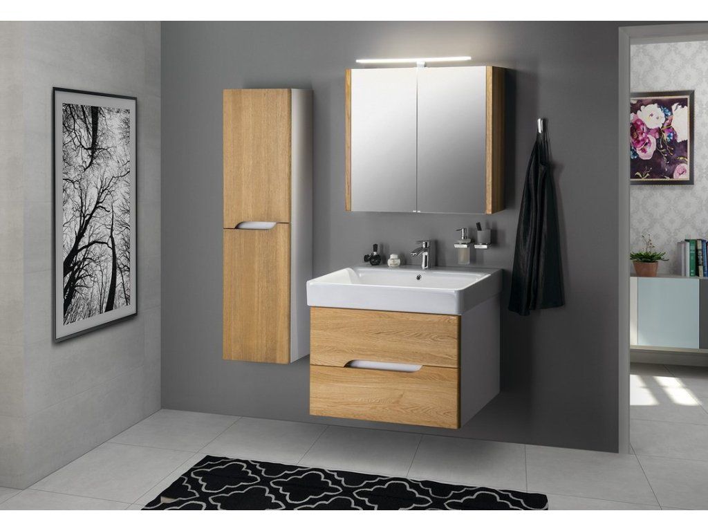 Série MEDIENA je kombinací bílé matné barvy a zásuvek z masivního dřeva, které svým zaoblením kopírují tvar keramických umyvadel SAND od italského výrobce GSI. Zásuvky s netradičním tvarem výřezu pro otvírání jsou vybaveny výsuvy BLUM s funkcí tlumení BLUMOTION s doživotní zárukou. Skříňky nabízíme buď celé v bílém matném provedení nebo v kombinaci korpus matná bílá a čela zásuvek ve 2 dekorech dubového dřeva (voskový olej dub natural a dub graphite). Šířky skříněk jsou 60, 80, 100 a 120 cm. V nabídce jsou též 2 typy doplňkových policových skříněk. Skříňku s prádelním košem získáte jednoduchým vyjmutím spodní police u doplňkové skříňky šíře 35 cm a instalací látkového prádelního koše na suchý zip.