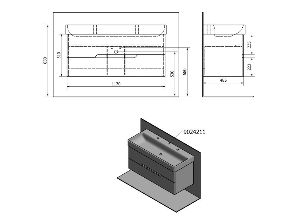 Sapho MEDIENA umyvadlová skříňka 117x51x48,5cm, bílá mat/dub graphite MD121